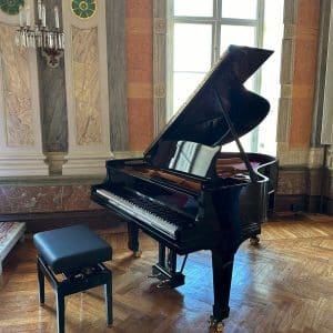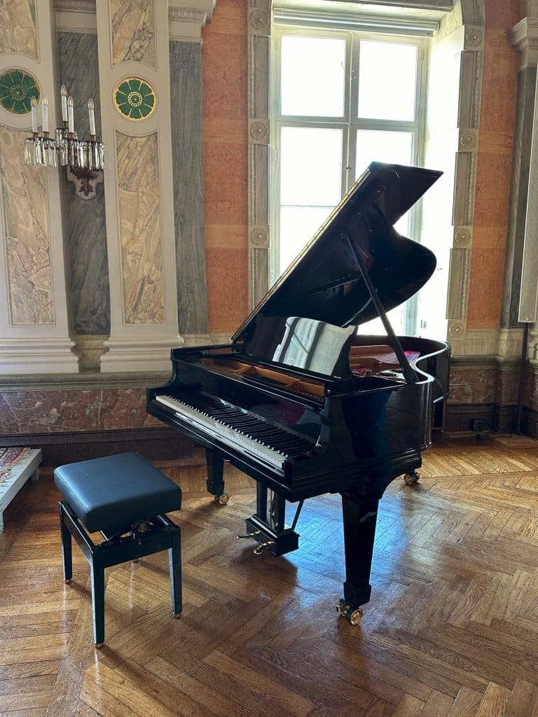 Med hjälp av pianisten Hans Pålsson valdes en flygel ut hos firma Juhl-Sørensen i Köpenhamn. Efter provspelning av ett flertal flyglar inköptes en flygel från Steinway & Sons, O-180 från 1911. Dessutom inköptes skyddsöverdrag och en ny Burghardt hydraulisk pianopall. För att flygeln enkelt ska kunna flyttas inom rummet försågs den också med halvkonserthjul med beläggning.