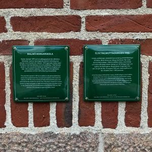 Föreningen tog upp frågan igen. Berätta om staden för Malmöborna och besökare genom att sätta upp skyltar med information på intressanta hus och platser. Projektet är ett samarbete mellan Föreningen och Stadsarkivet, Malmö Museum och Kulturförvaltningen.
