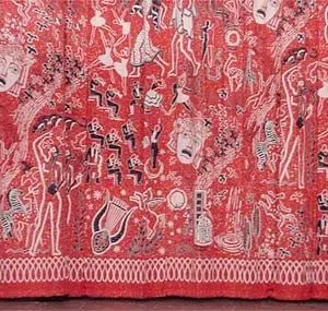 Ridån till Malmö Stadsteater 1944 var det största dekorativa arbete som utförts i tygtryck i Sverige, 8,5 x 32 meter. Det trycktes med röd bottenfärg och konturer i svart på vitt konstsilketyg. Mönstret är en myllrande sekvens av omväxlande antika och moderna motiv: Orfeus med lyran och en herde med sin flöjt sida vid sida med ett jazzband från 1930-talet.